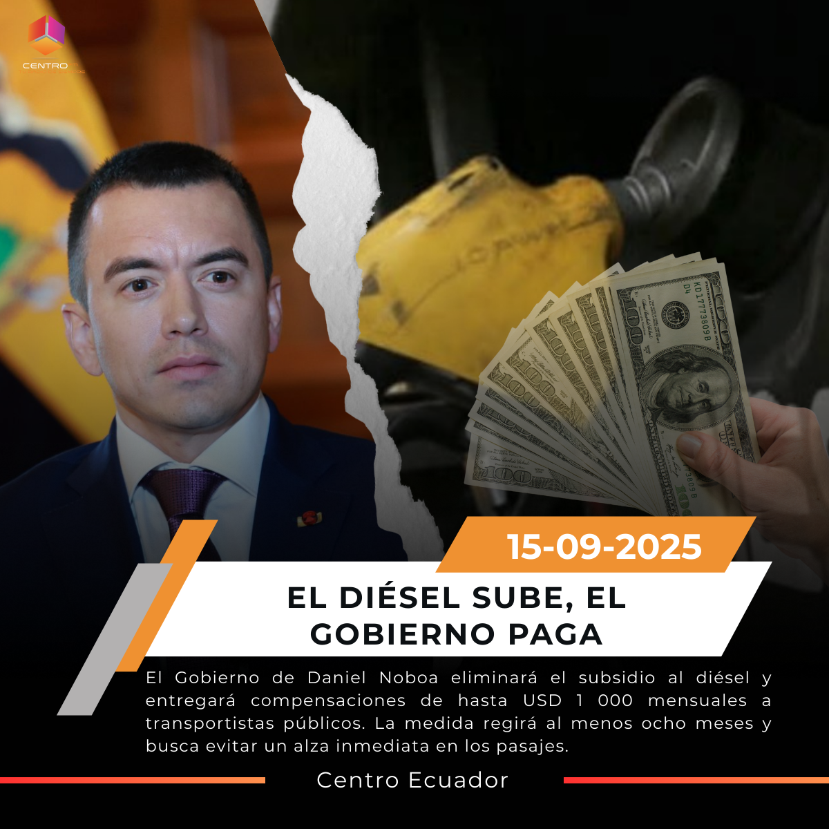 La eliminación del subsidio busca ahorrar USD 1 100 millones al año, mientras transportistas recibirán hasta USD 1 000 mensuales. El Gobierno de Daniel Noboa inició este 15 de septiembre