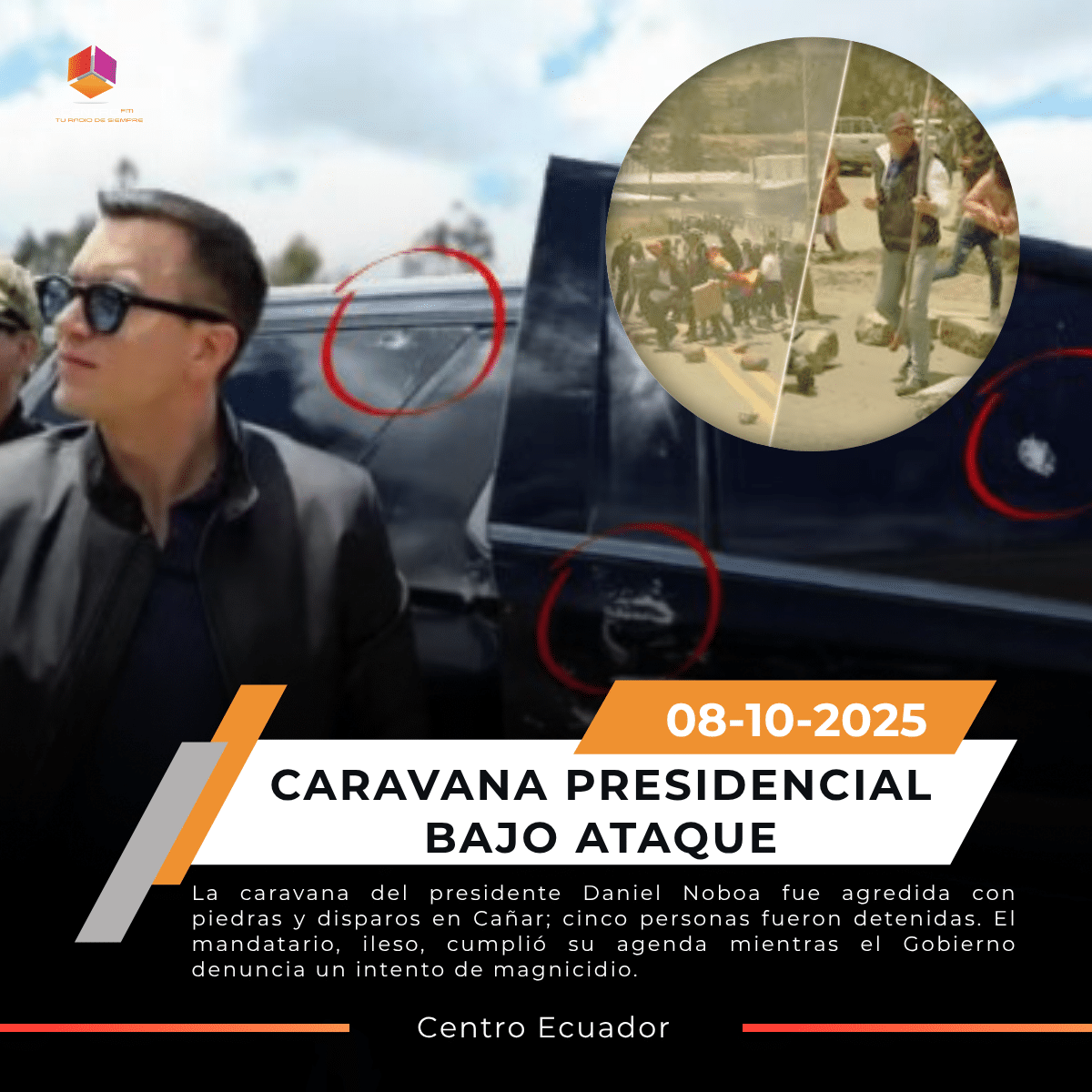 Ataque a la caravana presidencial: Daniel Noboa mantiene su agenda pese a la violencia en CañarAtaque a la caravana presidencial: Daniel Noboa mantiene su agenda pese a la violencia en Cañar
