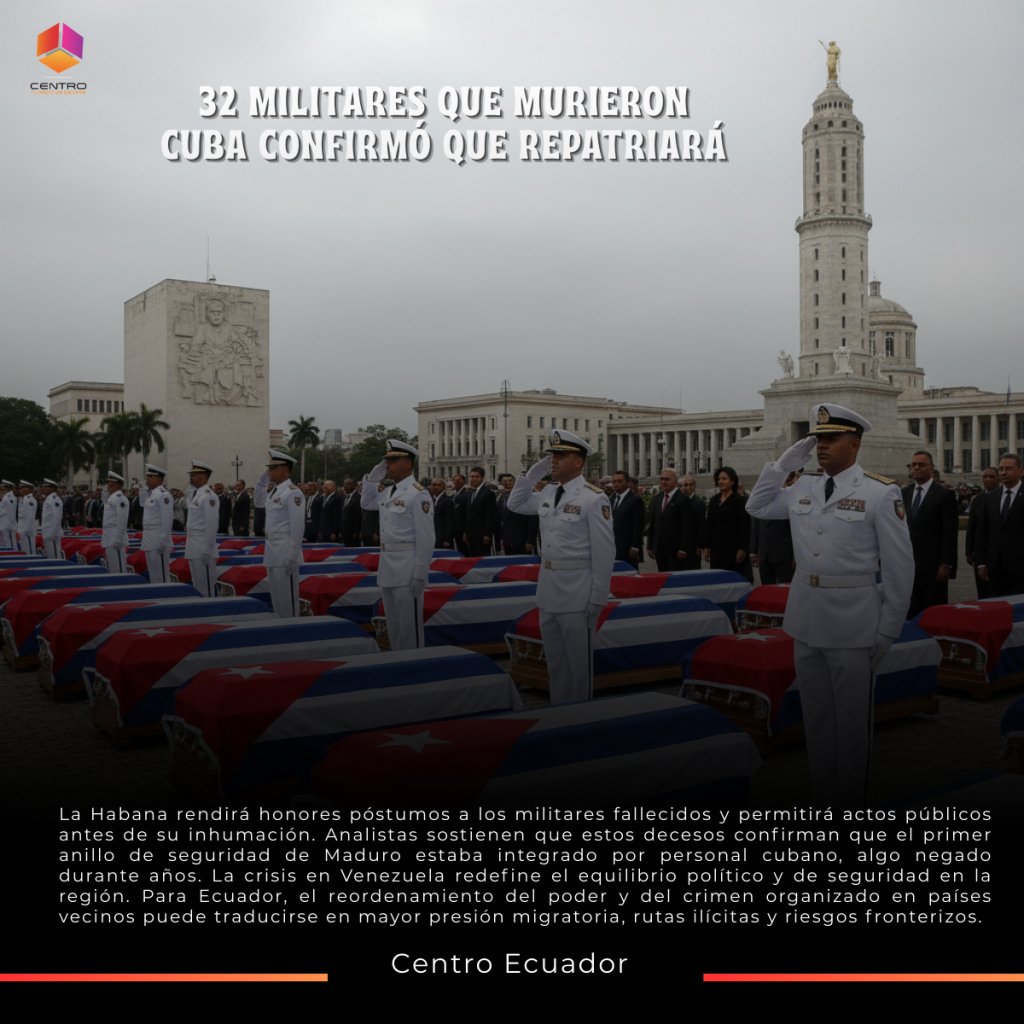 La repatriación de los militares cubanos fallecidos en Venezuela no solo es un acto simbólico, sino una confirmación política. Revela hasta qué punto la seguridad del régimen venezolano dependía de apoyos externos y abre un nuevo capítulo en la relación entre Cuba, Estados Unidos y la región.