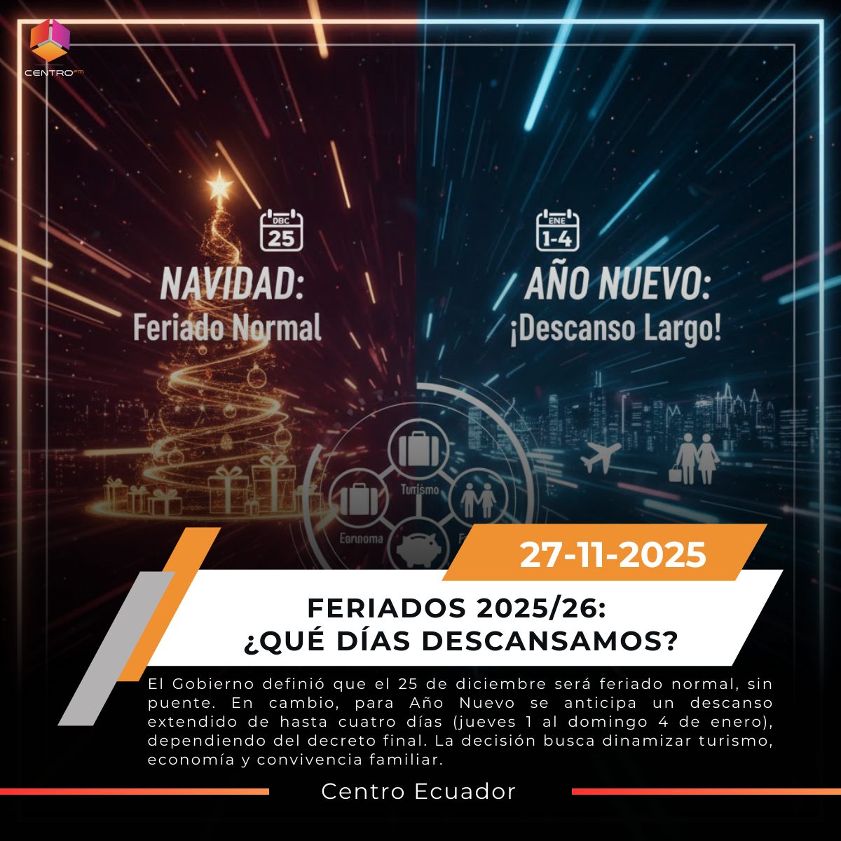 Navidad será día único; Año Nuevo podría convertirse en un descanso largo El Gobierno confirmó que el 25 de diciembre se mantiene como feriado puntual, sin puente. En cambio, para