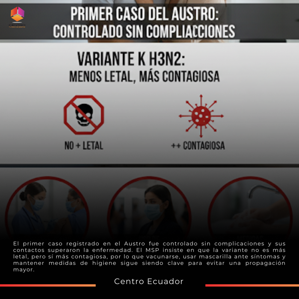 Ecuador confirma el segundo caso de la variante K de influenza A H3N2. El paciente está estable, pero el MSP refuerza la vigilancia epidemiológica y llama a la vacunación. Autoridades piden no bajar la guardia y proteger a los grupos vulnerables ante el aumento de virus respiratorios.