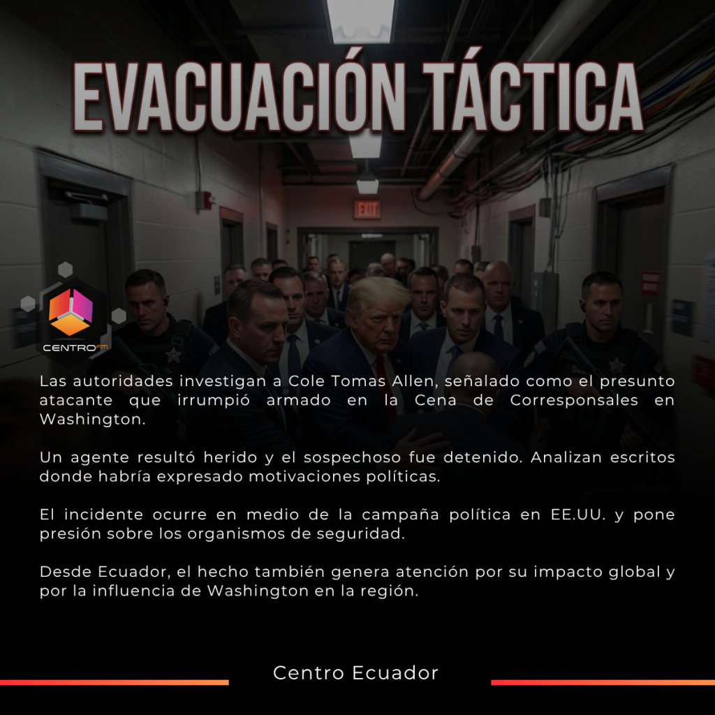 La tradicional Cena de Corresponsales de la Casa Blanca, uno de los eventos políticos y mediáticos más visibles de Estados Unidos, quedó marcada por un tiroteo que obligó a evacuar al presidente Donald Trump y a centenares de asistentes.